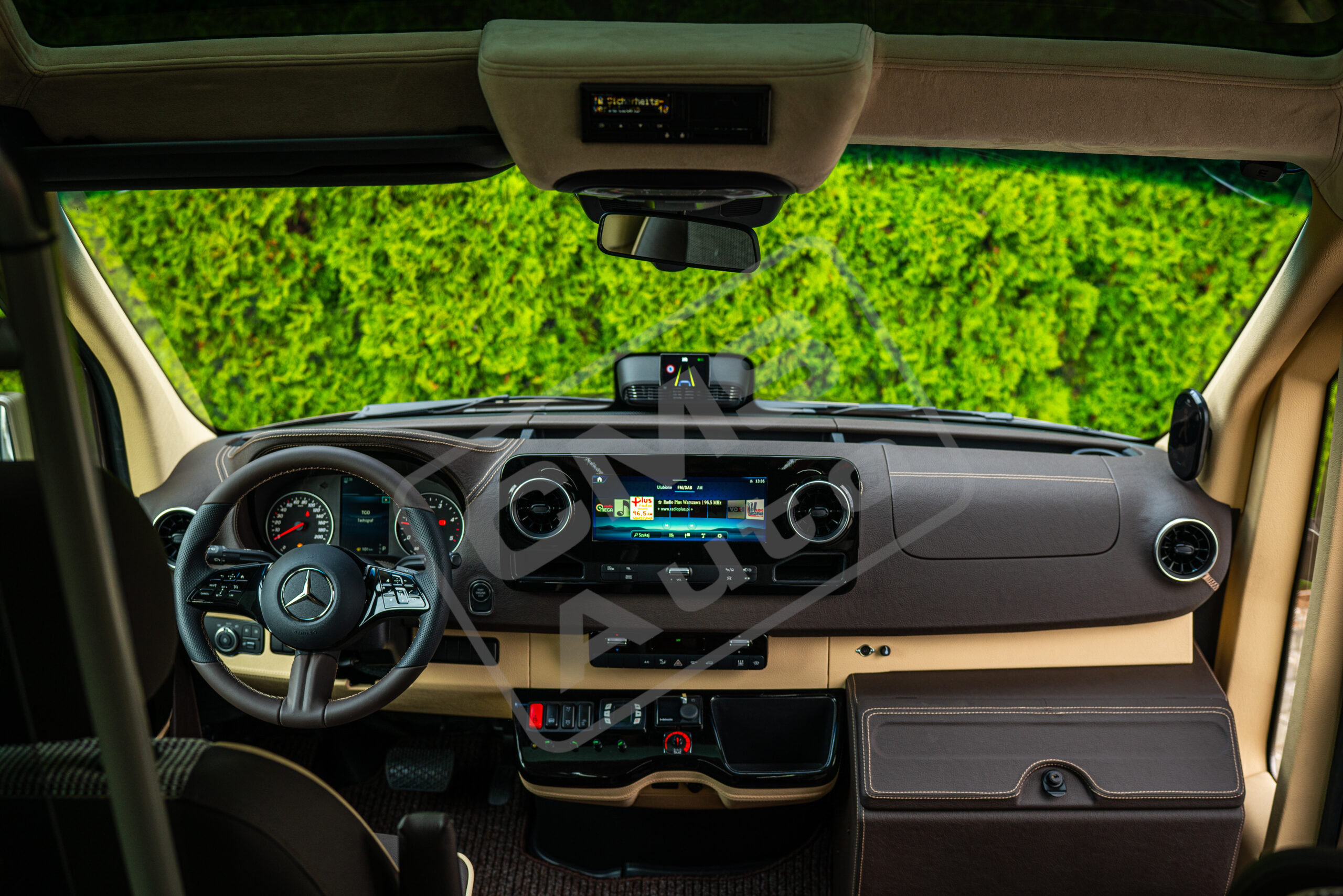 This is the Client, who picks the type of glazing, air-condition, heating… Depending on the needs, we mount AV equipment (DVD players, LCD monitors), reversing camera, CB radios, navigation, GPS systems, car fridges and mini-bars.